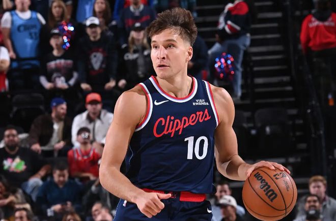 本场比赛中,快船虽然输掉了比赛,但是球队的先发得分后卫博格丹-博格达诺维奇(Bogdan Bogdanovic)的表现还是颇具亮点的。博格达诺维奇全场出场24分26秒,投篮12中6,三分线外6中2,得到了14分2篮板1助攻的数据,还有2次失误和5次犯规,正负值为+1。博格达诺维奇在进攻端还是有着不错的进攻效率的,他也是能够通过各种方式完成得分的,他是快船全队为数不多具备持球进攻能力的球员,而且他也具备一定的外线投射能力以及组织和串联能力。只是博格达诺维奇在本场比赛中并没有得到更多的球权和更高的战术地位作为支持,他在这种情况下也是很难打出更加华丽的理想的数据了。至少博格达诺维奇的正负值是+1,这也能够说明他在场上时球队的局面并不差。